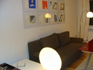 Ein schöner Dielenboden und 3 große Fenster, die sich über die ganze Länge des Wohn-Schlafbereichs ziehen, verleihen der Wohnung einen besonderen Charme.