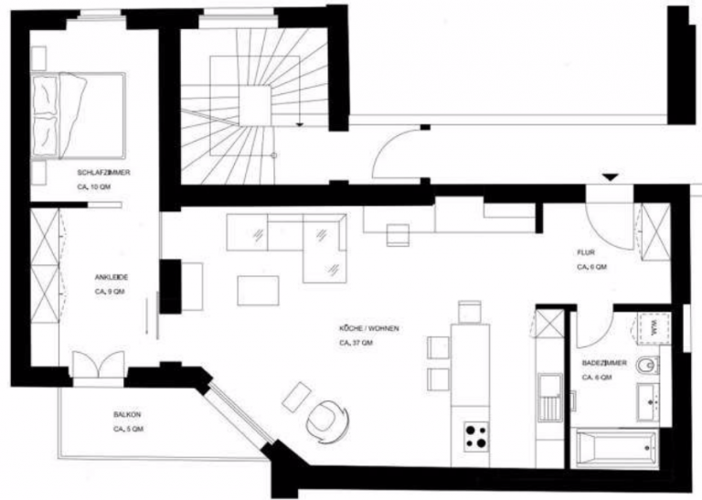Die Wohnung ist ausgestattet mit Glattputzwänden, Eichendielung mit Fußbodenheizung und verfügt über eine großzügige 3m Raumhöhe.