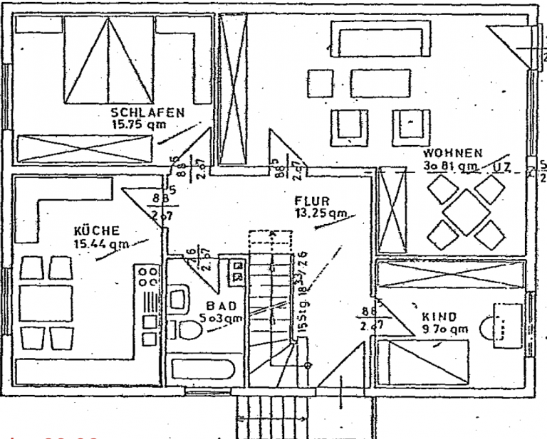 Das Einfamilienhaus wurde 1976 massiv gebaut, verfügt über eine Wohnfläche von ca. 113,43 m² nebst Nutzflächen im Kellerbereich und einen ausbaufähigen Dachboden, bei dem die Anschlüsse bereits vorgesehen sind.