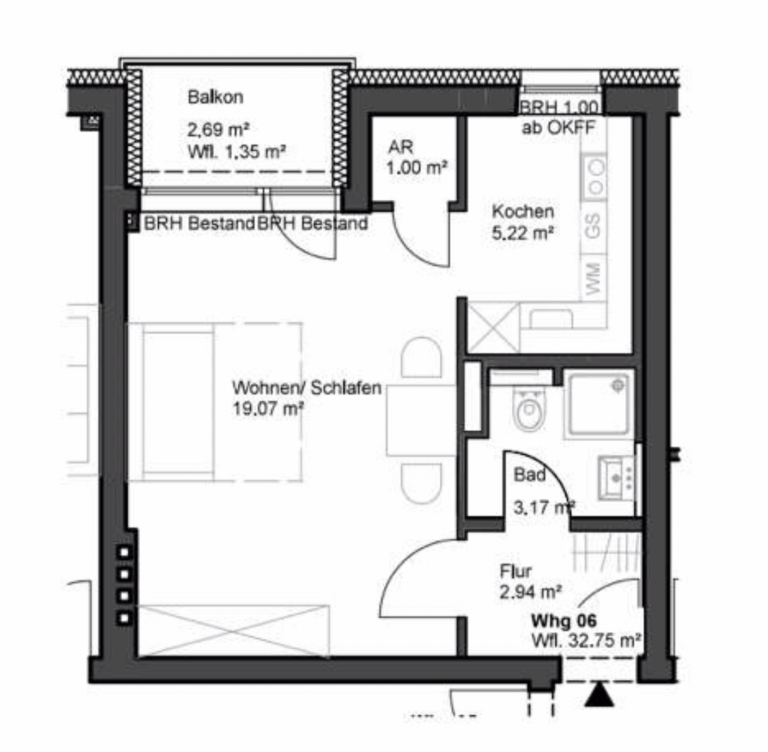 Im Wohnzimmer stehen knapp 20 m² zum Wohnen, Schlafen oder Essen zur Verfügung. Der südwestlich ausgerichtete Balkon bietet Platz zur Erholung und zum Entspannen.
