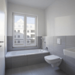Vom Eingangsbereich aus auf der linken Seite befindet sich das innenliegende Gästebad, welches mit einer Dusche ausgestattet ist. Neben dem Gästebad gibt es nochmal einen separaten Hauswirtschaftsraum, der ebenfalls genügend Platz bietet. Danebenliegend befindet sich ein begehbares Ankleidezimmer. Dieses ist auch der Durchgangsraum zum Schlafzimmer und zum tagesbelichteten Badezimmer, welches sowohl mit einer Badewanne als auch einer Dusche ausgestattet ist.
