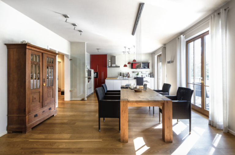 Durch hohe Decken, bodentiefe Fenster sowie eine sehr durchdachte Grundrissgestaltung wurde ein großzügiges Wohngefühl geschaffen, welches ein hohes Maß an Wohnqualität bietet und lichtdurchflutete Wohnbereiche ermöglicht.