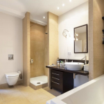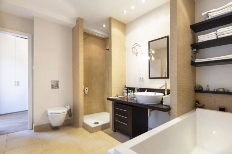 Weiterhin befinden sich auf dieser Ebene ein geräumiges Schlafzimmer, ein modernes Badezimmer en-suite mit einer Badewanne und begehbaren Dusche sowie ein Ankleideraum. Ein separates WC bzw. Gäste-WC steht ebenfalls zur Verfügung.