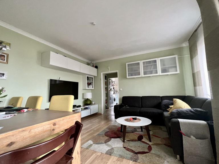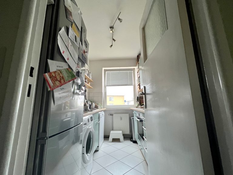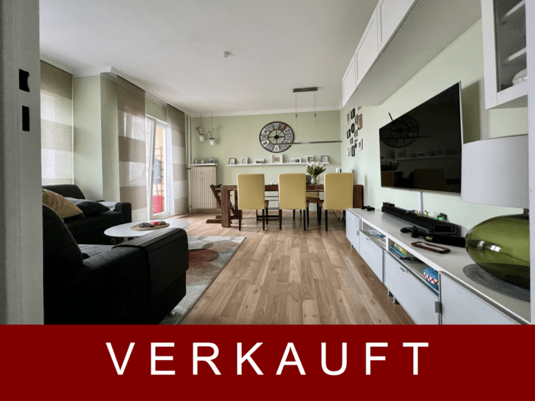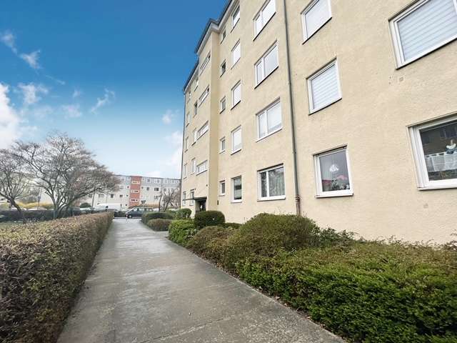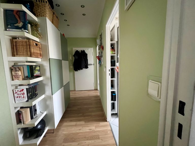 Auf einer Wohnfläche von ca. 70m² verteilen sich ein Flur mit einer Abstellkammer, die unter anderem Platz für einen Trockner bietet, ein tagesbelichtetes Wannenbad, eine Küche sowie drei Schlafzimmer und ein Wohnzimmer mit Platz für eine Essecke. Von hier ist der Balkon mit Morgensonne zu begehen.