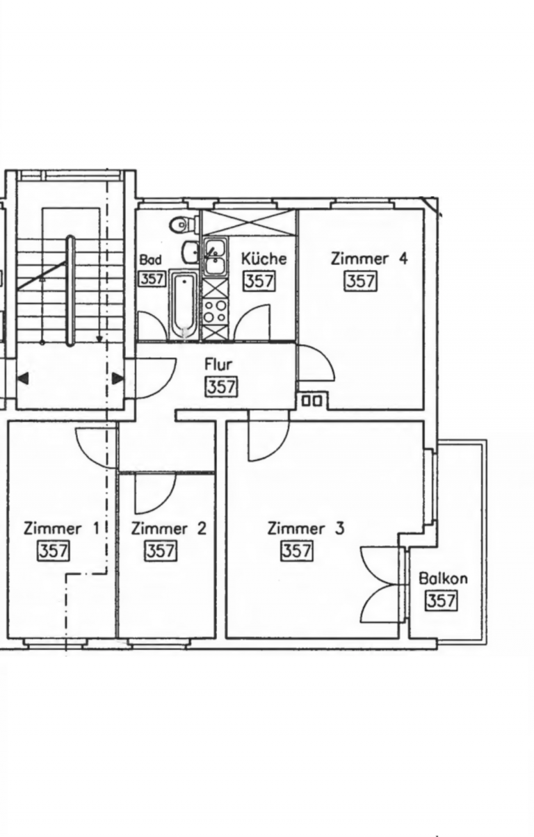 Die Wohnung ist im 3. Obergeschoss gelegen und über das Treppenhaus erreichbar.