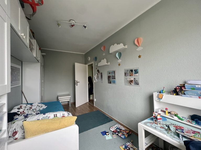 In den Wohnräumen ist ein moderner Laminatboden verlegt, das Badezimmer und die Küche sind gefliest. Die Wohnung verfügt über doppelt verglaste Kunststofffenster. Die Wände sind verspachtelt, und die Deckenhöhe beträgt ca. 2,55 m. In den Kinderzimmern wurden die Wände mit einer Raufaser-Tapete versehen. Maler- und Tapezierarbeiten sind zuletzt vor vier Jahren erfolgt.