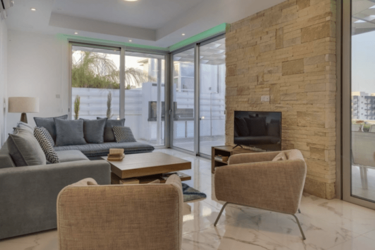 Die Villa liegt im Süden von Protaras. Der nächste Strand ist nur ca. 400 m fußläufig entfernt. Und der bildschöne Strand von Konnos liegt nur 900 m südlich entfernt. Der Strand Fig Tree Bay und das Zentrum von Protaras sind etwa 1,5 km nördlich gelegen. Einkaufsmöglichkeiten und Restaurants befinden sich an der Hauptstraße nur ca. 300 m entfernt.
