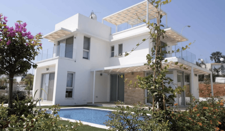 Geräumige Wohnbereiche, große Schlafzimmer und eine große Terrasse mit Pergola neben dem gefliesten Pool machen die Villa zur perfekten Residenz am Meer.