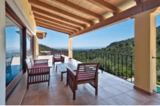 Das Haus verfügt über verschiedene Terrassen, von denen man einen spektakulären Blick auf die Bucht von Palma und ins Grüne geniesst.
