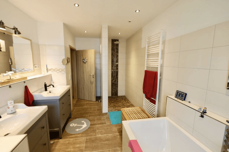 Der technisch gut ausgestattete Bungalow verfügt über ein großes Wohnzimmer sowie drei Zimmer, die sich als Schlaf- bzw. Kinderzimmer eignen. Das großzügige Badezimmer mit zwei Handwaschbecken verfügt über eine ebenerdige Regenschauer-Dusche sowie über eine extra breite Badewanne.