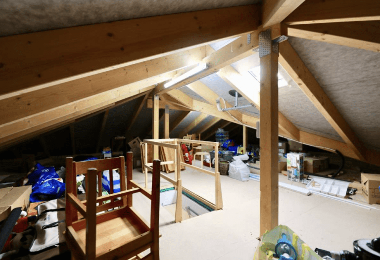 Auf dem geräumigen Dachboden ist sehr viel Stauraum oder Platz für Hobbys.