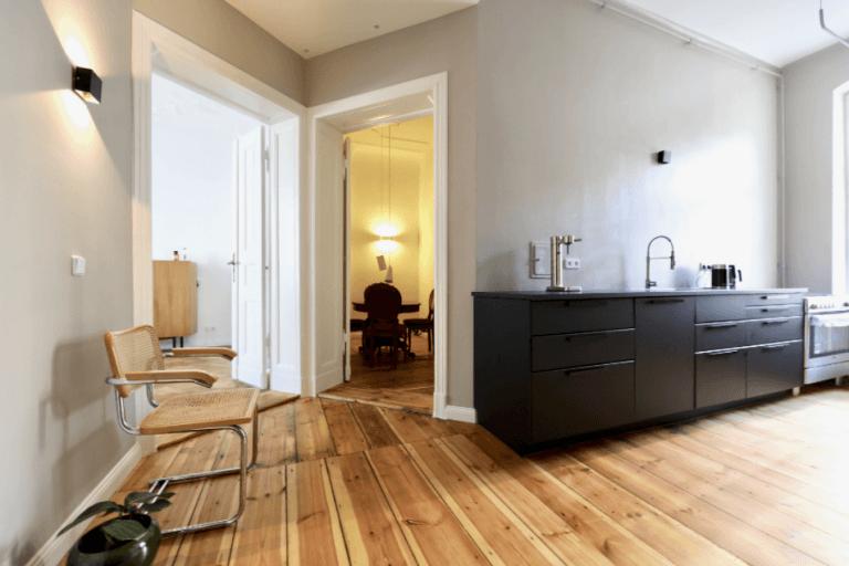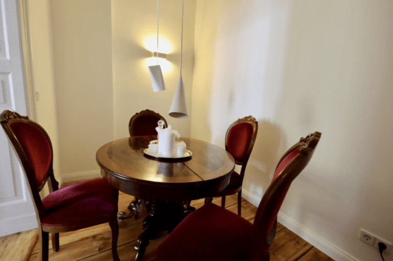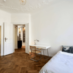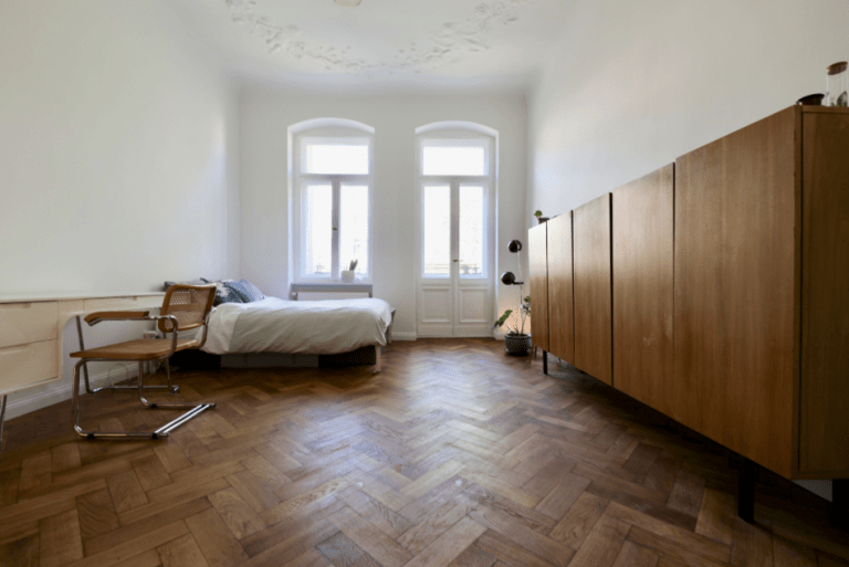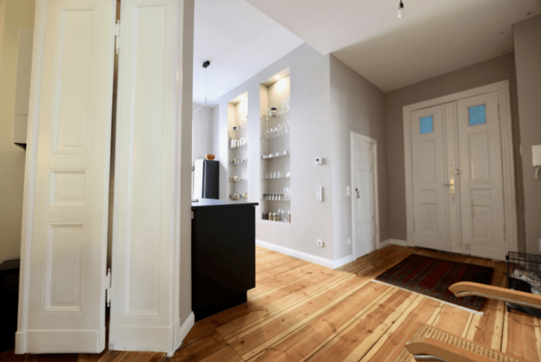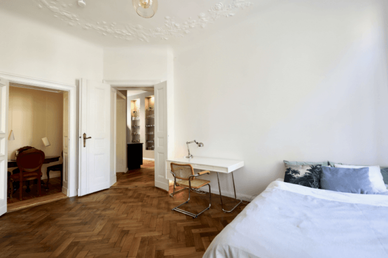 Die Wohnung ist ausgestattet mit geölten Holzdielen sowie Parkettboden im Fischgrätenmuster, welcher den Räumen ein gewisse Exklusivität verleiht. Begehrte Stuckelemente an den Decken und originale Türbeschläge sind ebenfalls vorhanden. Eine Deckenhöhe von ca. 3,45m vermittelt ein großzügiges Raumgefühl.