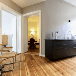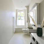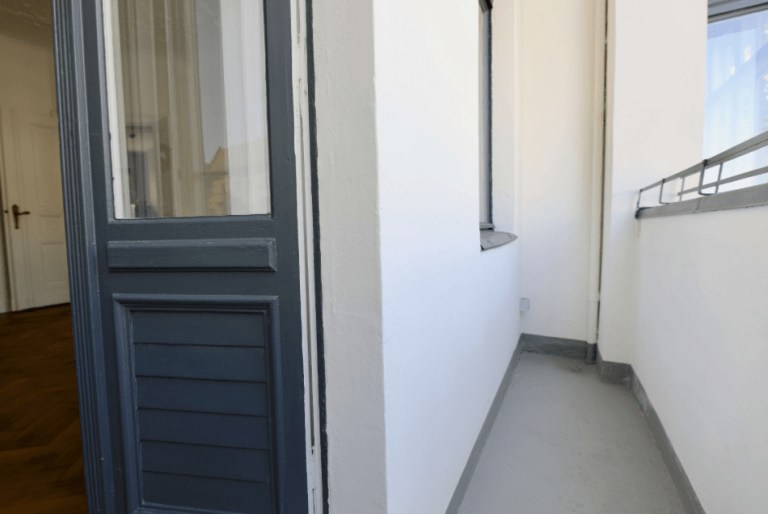 Die Wohnung befindet sich in der zweiten Etage des Vorderhauses und verfügt über ca. 70m² Wohnfläche, die sich aufteilen auf 2,5 Zimmer, einen Flur, eine offene Küche und ein modernes Badezimmer mit Platz für die Waschmaschine. Ein schmaler, dafür sehr breiter Balkon steht zudem zur Verfügung.