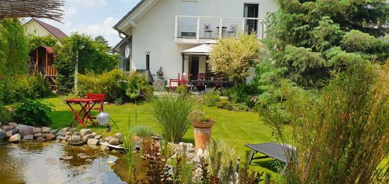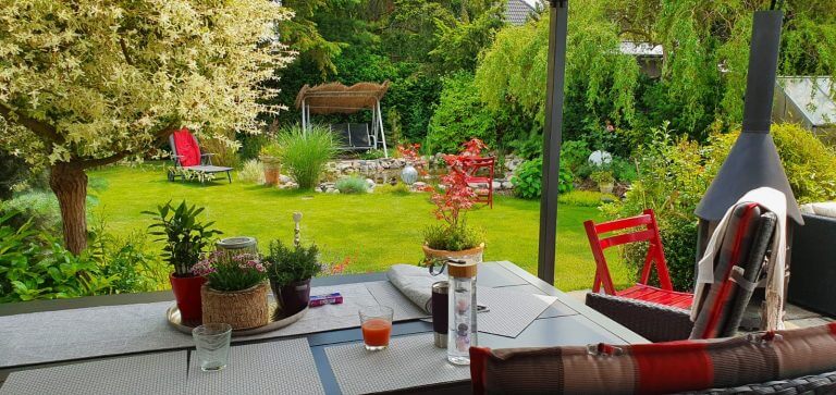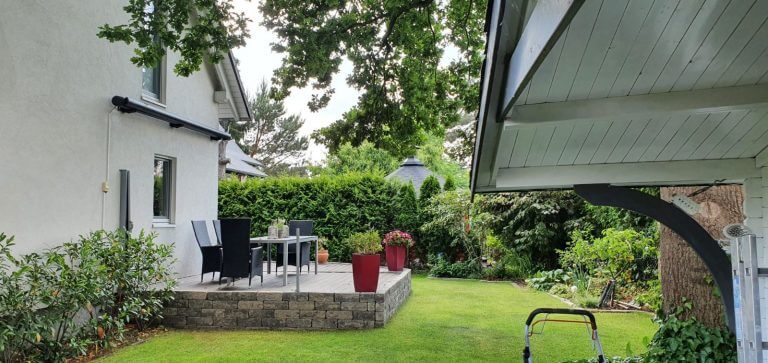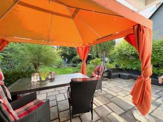Vom Wohnzimmer aus sind zwei einladende Terrassen und der Gartenbereich zu begehen. Der idyllisch angelegte Garten sowie auch die Terrassen bieten genügend Platz zum Grillen und zum Sonnen für entspannende oder auch für gesellige Zeiten.