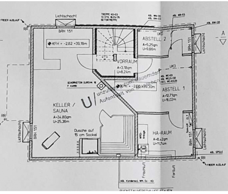 Abgerundet wird das Angebot durch den Kellerbereich, der genügend Stauraum, einen Hauswirtschaftsraum, einen Anschluss für eine Sauna sowie weitere Nutzflächen bietet.
