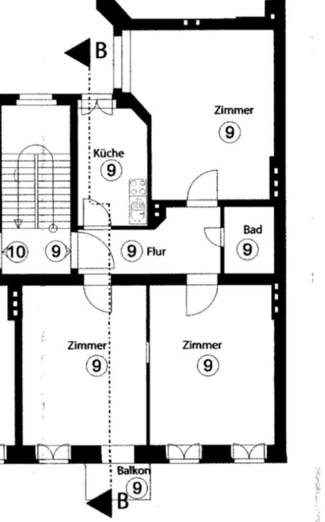 Das 1933 erbaute Wohn- und Geschäftshaus ist in ein Vorderhaus und einen Seitenflügel aufgeteilt. Die gut geschnittene Wohnung befindet sich im 3. Obergeschoss des Vorderhauses und überzeugt auf ca. 112 m² Wohnfläche durch ihren komfortablen Schnitt.
