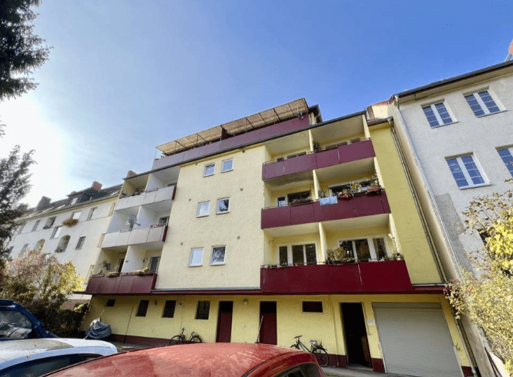 Das viergeschossige Mehrfamilienhaus wurde 1960 errichtet.