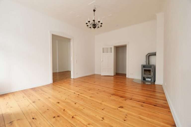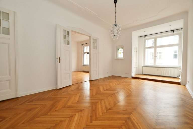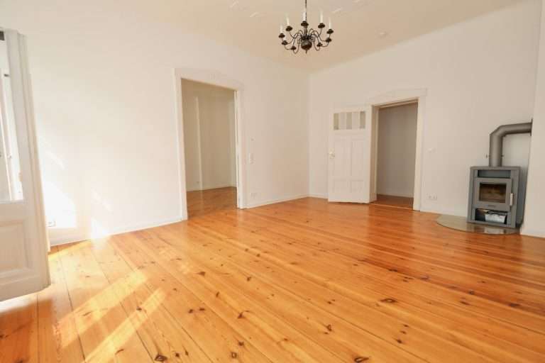 Die Zimmer sind mit schönen Holzdielen, Parkett im Fischgrätenmuster und Stuckelementen an den Decken ausgestattet.