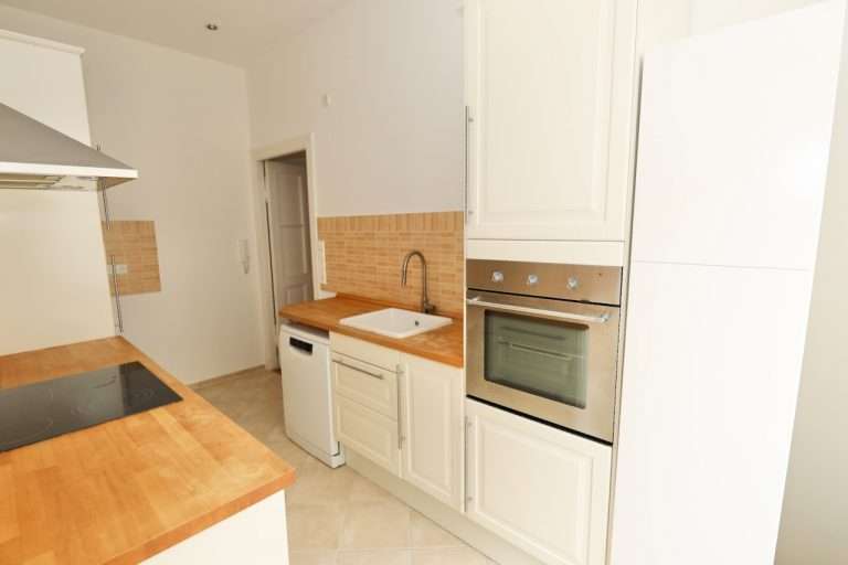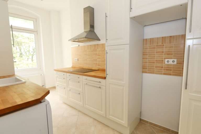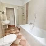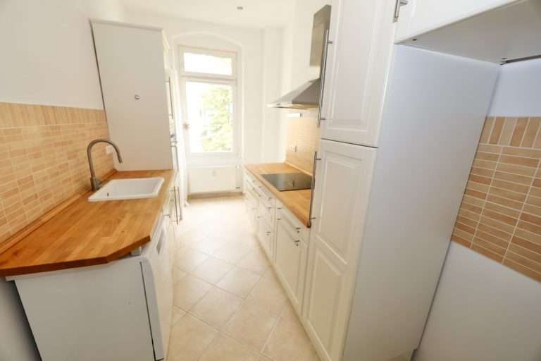 Das Badezimmer verfügt über eine Badewanne, eine separate Dusche, einen Handtuch-Heizkörper, ist hell gefliest und hat zudem ein großes Fenster für die optimale Belüftung und Belichtung. Die Küche bietet genügend Platz für Arbeitsflächen und auch einen Essbereich.