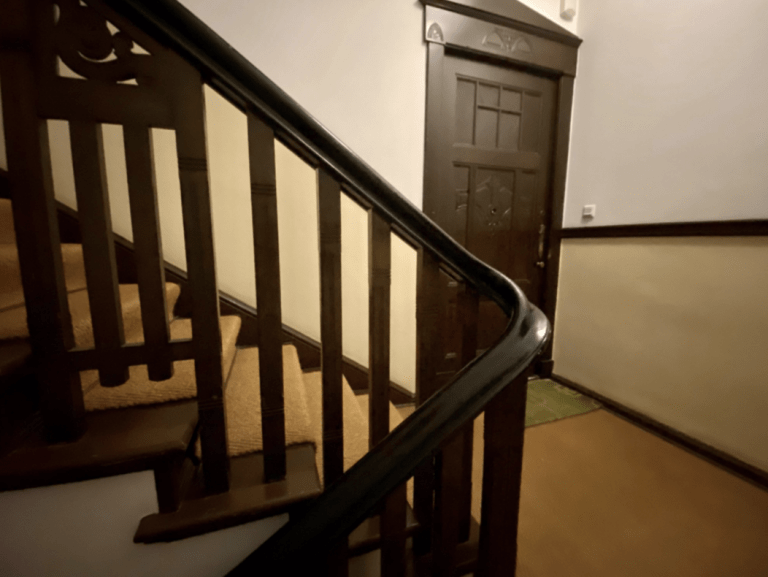 Das 1918 erbaute Wohnhaus ist in ein Vorderhaus, einen Seitenflügel und ein Hinterhaus aufgeteilt. Die Wohnung befindet sich im 3. Obergeschoss des Vorderhauses und erstreckt sich weiter in den Seitenflügel. Schon der Eingangsbereich des Hauses vermittelt durch Stuckverzierungen und alte Kacheln den geliebten Altbaucharme.