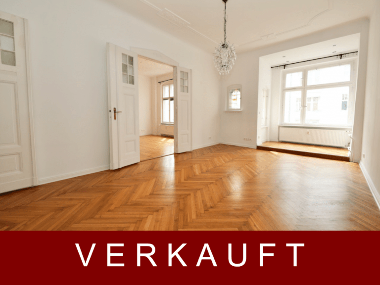 PARKETT IM FISCHGRÄTENMUSTER & STUCKELEMENTE MIT OFEN, ERKER & BALKON NAHE LIETZENSEE