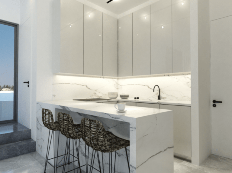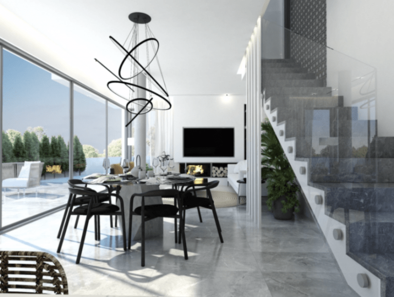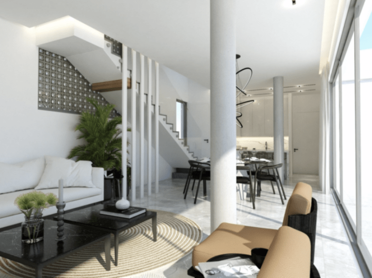 Es stehen insgesamt drei Schlafzimmer, drei Badezimmer und ein Gäste-WC sowie Terrassenflächen, ein Dachgarten & ein Pool zur Verfügung.