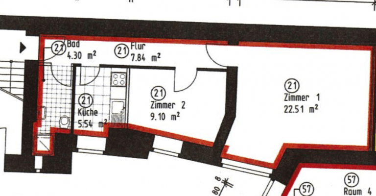 Die leerstehende 2-Zimmerwohnung befindet sich im Erdgeschoss des Seitenflügels eines 4-geschossigen, gepflegten Wohnhauses und hat eine Wohnfläche von etwa 49,29 m².