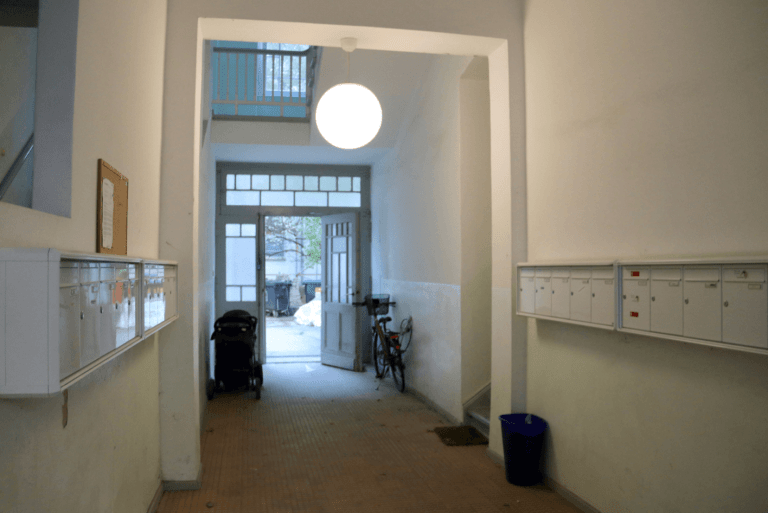Das Gebäude ist in ein Vorderhaus, einen Seitenflügel und ein Hinterhaus aufgeteilt. Die Wohnung befindet sich im 1. und 2. Obergeschoss des Seitenflügels und wurde aus zwei Wohnungen zu einer Maisonette zusammengelegt.
