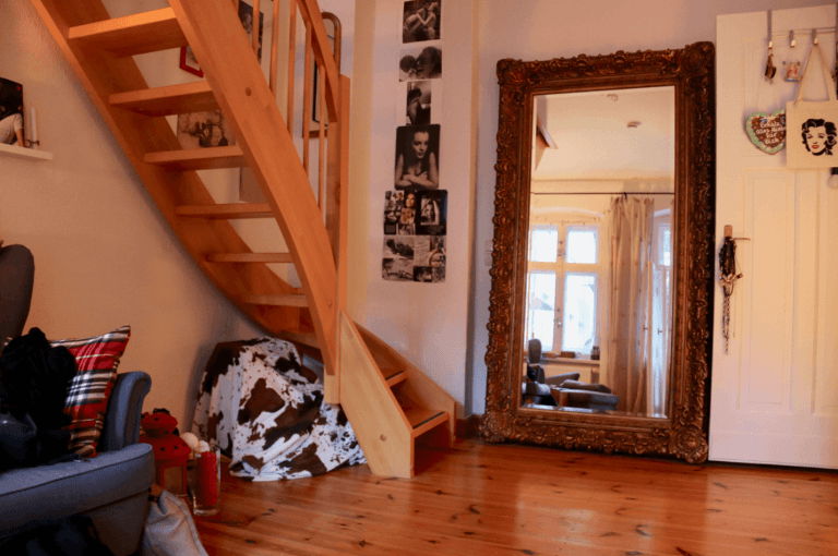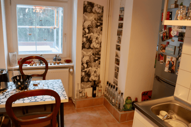 Die Wohnung vermittelt durch hohe Decken und Holzdielen den typischen Altbauflair.