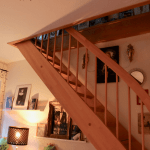 Über die Treppe gelangt man in den oberen Bereich der Wohnung, wo das Schlafzimmer untergebracht ist, welches ebenfalls über einen Balkon verfügt. Das moderne Badezimmer erfüllt den Traum einer separaten Dusche, einer Badewanne und bietet zudem Platz für eine Waschküche. Der obere Flur wird optimal als begehbare Garderobe genutzt.