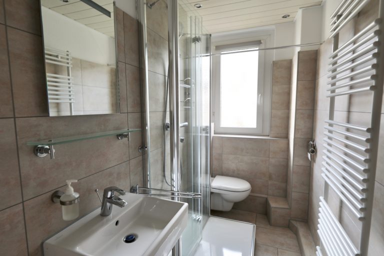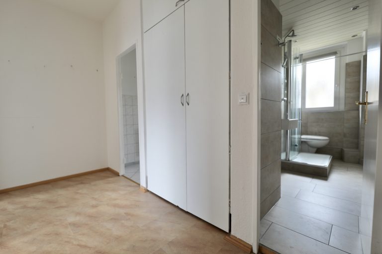 Das Duschbad wurde erst 2017 eingebaut und ist ausgestattet mit einem Handtuchheizkörper, einem hängenden WC, Handwaschbecken, Spiegel sowie mit einer platzsparenden Dusche mit wegklappbaren Türen.