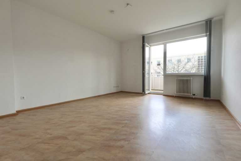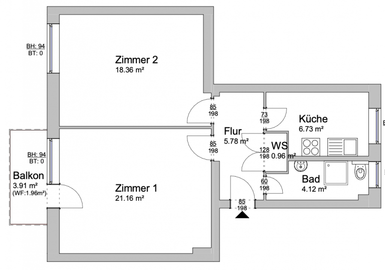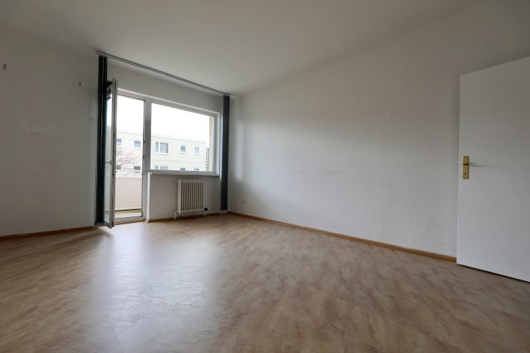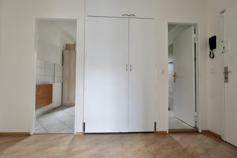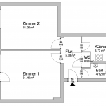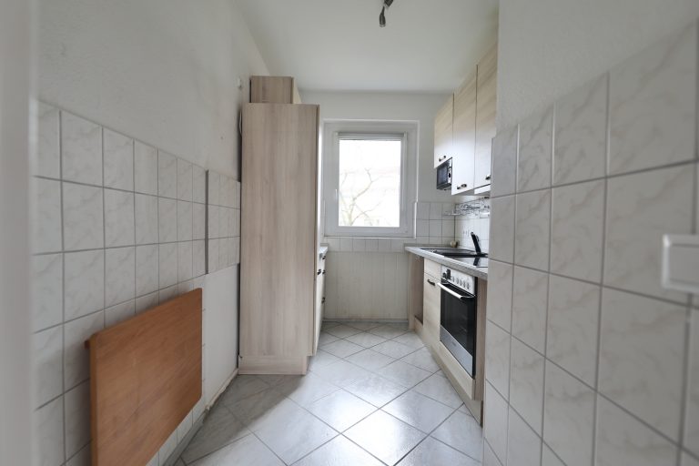 Die Wohnfläche von ca. 59 m² verteilt sich auf einen Eingangsbereich mit einer praktischen Nische mit Einbauschrank, zwei Zimmer, ein tagesbelichtetes Duschbad und eine Küche. Letztere ist mit einer Einbauküche ausgestattet und bietet Platz für einen kleinen Essbereich.