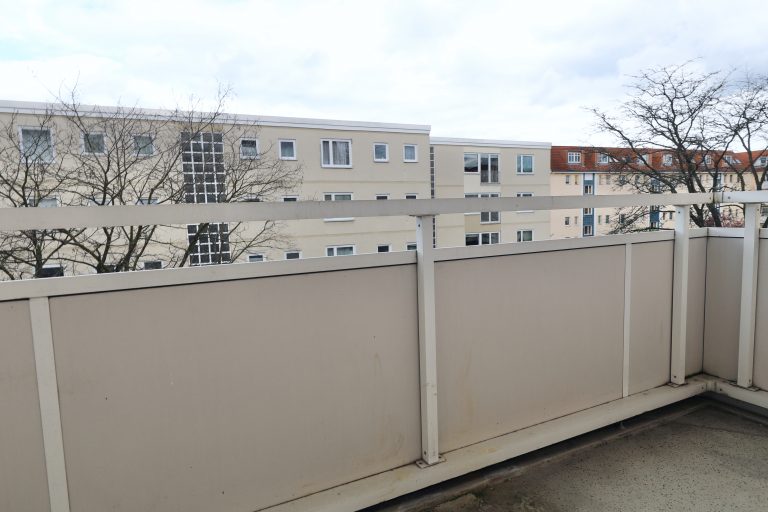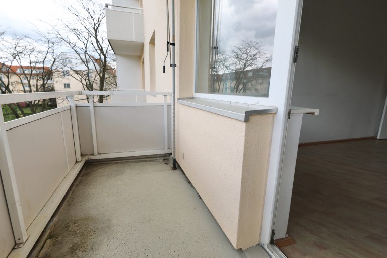 Der ruhig ausgerichtete und überdachte Balkon ist vom Wohnzimmer aus zugänglich und lädt zu entspannten Stunden ein.