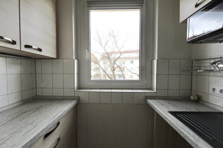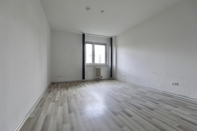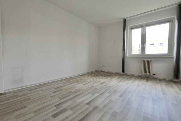 Die Wohnung verfügt über zweifach verglaste Kunststofffenster. In den Wohnräumen ist ein Laminatboden verlegt, die Küche und das Badezimmer sind hell gefliest.