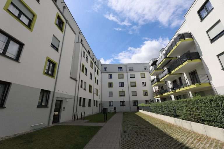 Die Wohnanlage wurde 2018 erbaut und überzeugt mit ihrer modernen Architektur. Auf insgesamt fünf Geschossen verteilen sich in diesem Gebäudekomplex, der vier Hauseingänge beinhaltet, 64 Wohneinheiten.