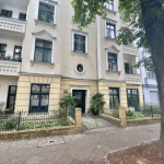 Die Wohnung verfügt über ca. 87 m² Wohnfläche. Über den Flur sind alle Zimmer der Wohnung erreichbar. Zum Hof ausgerichtet sind die Küche nebst geräumiger Speisekammer, das innenliegende Badezimmer und ein Schlafzimmer mit südlich ausgerichtetem Balkon. Zur Straße ausgerichtet sind zwei weitere Zimmer, wobei eines davon über eine schöne nördlich ausgerichtete Loggia verfügt.