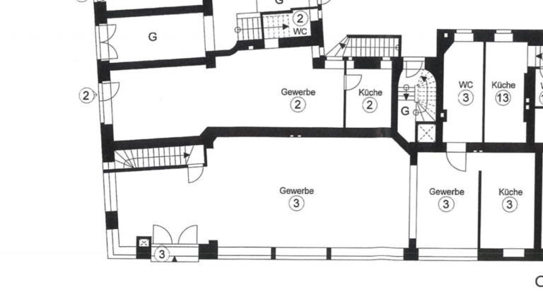 Die Gewerbeeinheit befindet sich im Erdgeschoss eines 5-geschossigen Altbaus aus dem Jahr 1905 und ist im Vorderhaus gelegen. Sie verfügt über eine Gesamtfläche von ca. 244 m², bestehend aus einer schönen Ladenfläche mit großem Schaufenster, einem WC, einer Küche sowie einer großen Lagerfläche im Kellergeschoss.