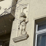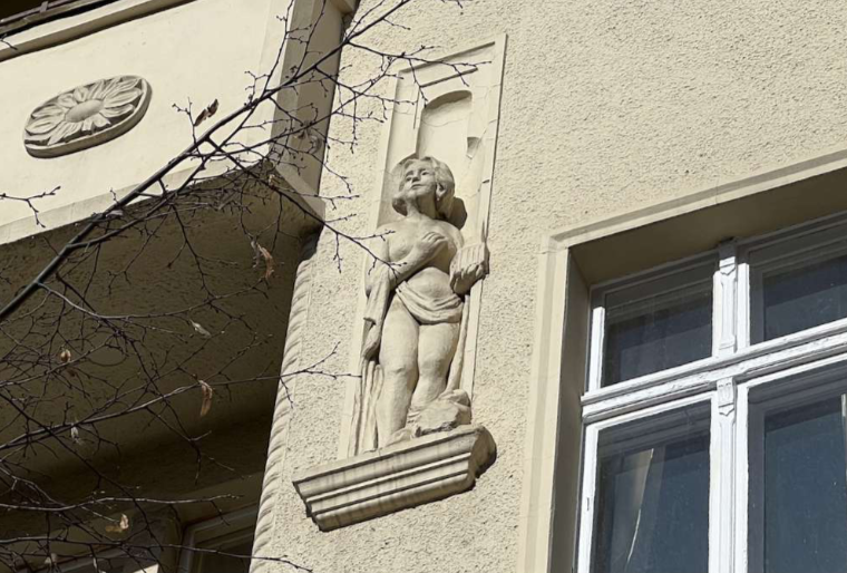 Das Wohngebäude wurde 1906 erbaut, beinhaltet vier Geschosse sowie ein ausgebautes Dachgeschoss und hat eine ornamentverzierte Fassade mit Putten.