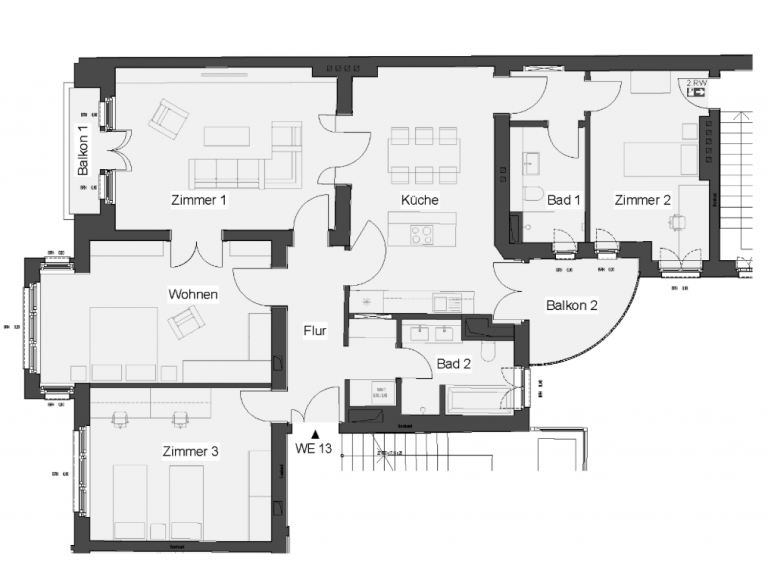 Die Möbel sind nicht Bestandteil des Angebots.