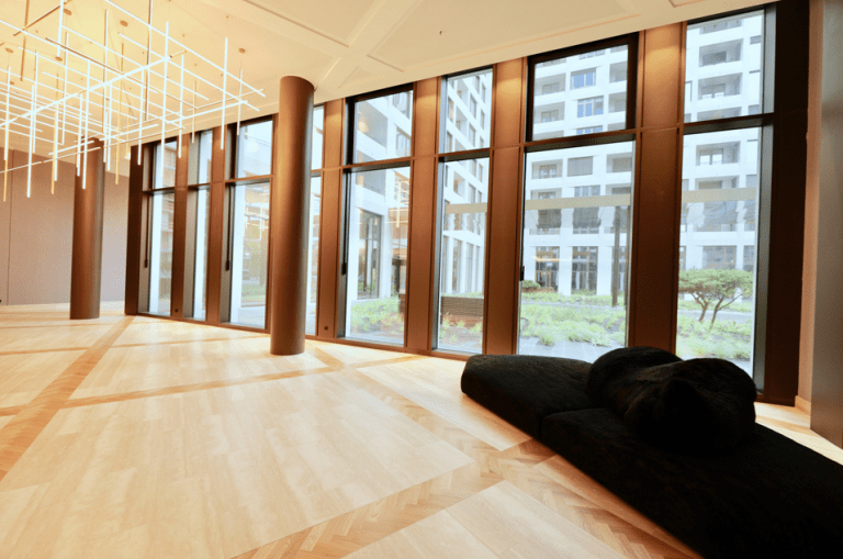 Ein Kellerabteil, ein Fahrradkeller, ein Tiefgaragen-Stellplatz, ein Sportstudio, eine gemeinschaftliche Dachterrasse zum Entspannen oder für private Anlässe, die Sky-Lounge sowie ein Concierge-Service runden das Angebot ab und machen Berufstätigen das tägliche Leben leichter.