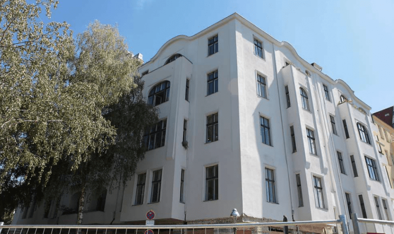 Das Wohn- und Geschäftshaus-Ensemble wurde 1912 erbaut und bildet ein Karree mit zwei Hauseingängen. Die Hauseingänge und Treppenhäuser repräsentieren die Baukunst der Gründerzeit.