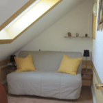 Die Penthouse-Wohnung ist über ein imposantes Treppenhaus erreichbar. Ein Schlafzimmer, ein halbes Zimmer, welches sich als Gäste-, Arbeits- oder Kinderzimmer eignet, ein Bad, und ein großzügiges Wohnzimmer mit offener Küche verteilen sich auf ca. 85 m².