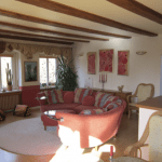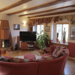 Das Wohnzimmer verfügt über einen Kamin für gemütliche Winter-Abende und bietet Zugang zur großzügigen Terrasse. Diese bietet einen freien Blick und lädt zum Entspannen ein!