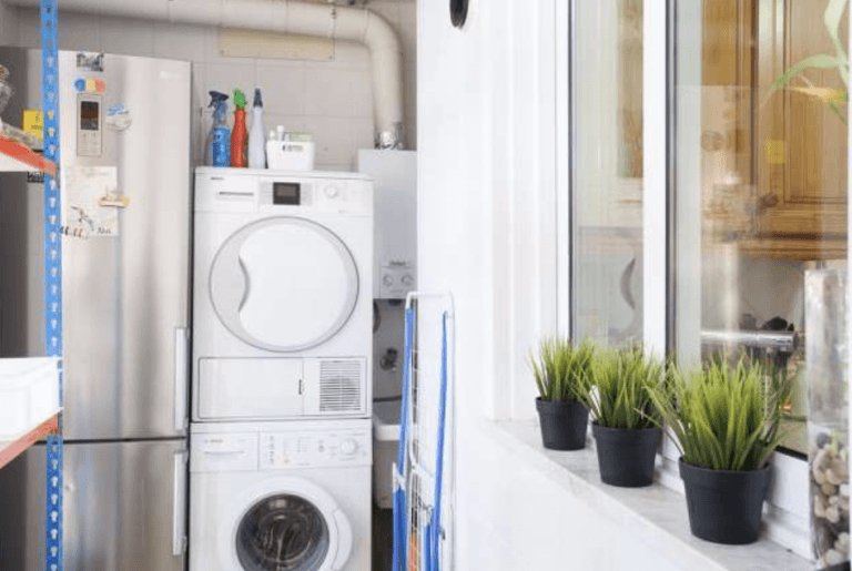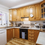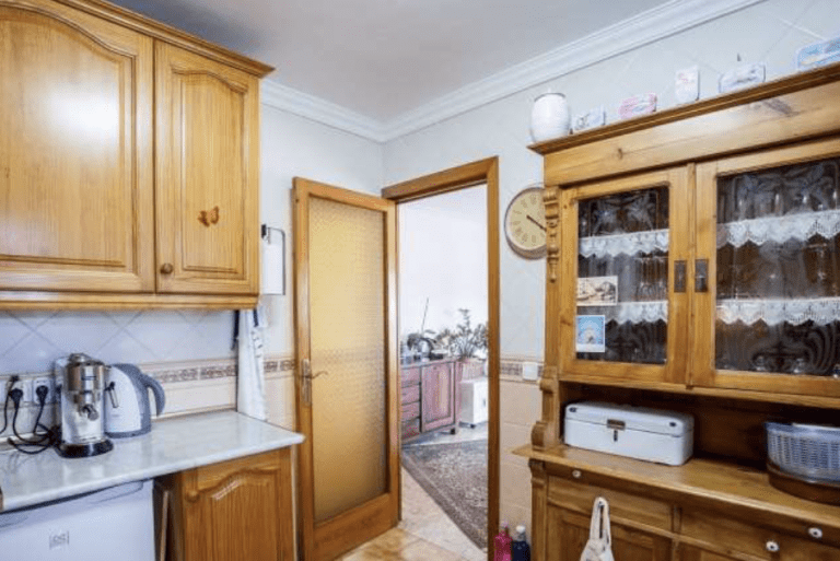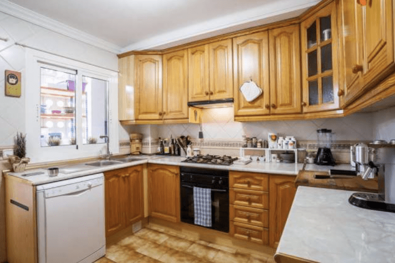 Die Küche ist ausgestattet mit einer komplett eingerichteten Einbauküche mit Elektrogeräten wie Geschirrspüler, Gasherd und einem Kühlschrank. Weiterhin steht ein Hauswirtschaftsraum zur Verfügung (Balkonbereich) mit Waschmaschine und einer großen Kühl-Gefriereinheit.