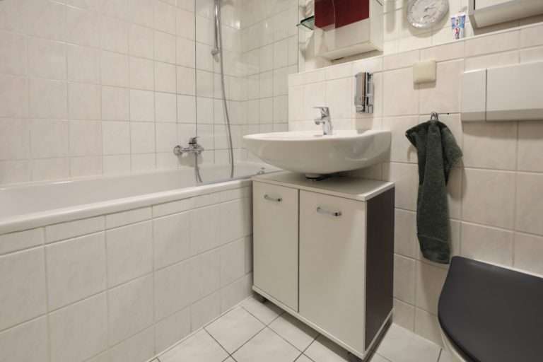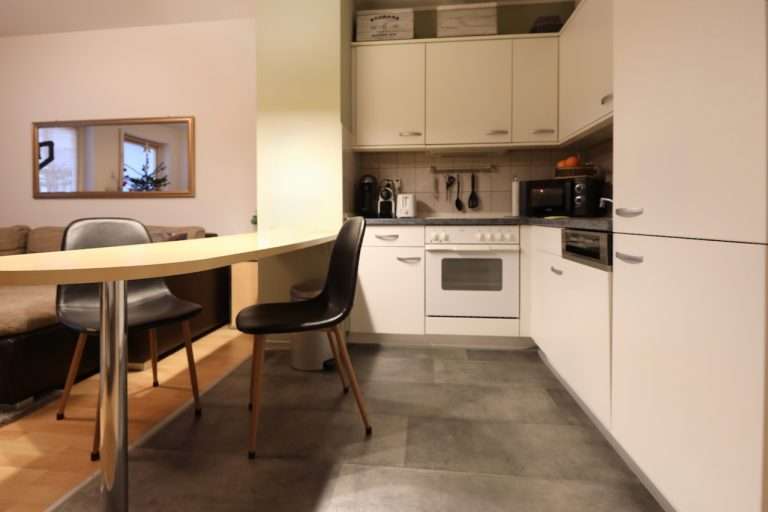 Eine Wohnfläche von ca. 44,26 m² verteilt sich auf einen Flur; ein Badezimmer, ausgestattet mit einer Badewanne und Handtuchwärmer; ein Schlafzimmer und ein Wohnzimmer mit offenem Küchenbereich sowie Zugang zur Terrasse. Diese ist westlich ausgerichtet. Die Wohnung verfügt zudem über ein Sondernutzungsrecht für einen Gartenanteil von ca. 21 m².