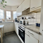 Auf ca. 85 m² verteilen sich ein Flur, drei Zimmer, ein Badezimmer und eine Küche, ausgestattet mit einer Einbauküche.