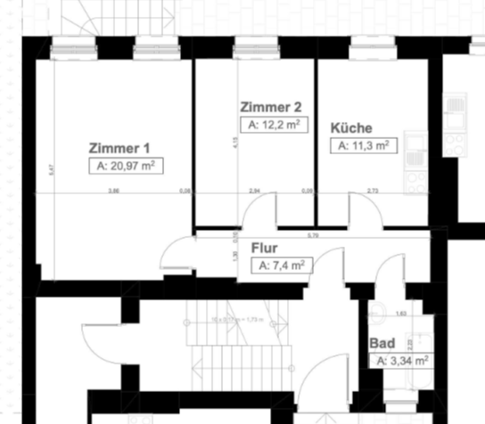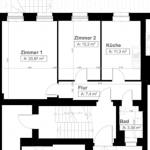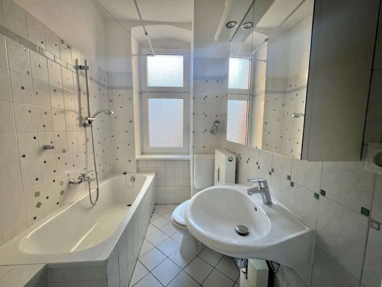 Auf ca. 55,21 m² verteilen sich ein Flur, ein tagesbelichtetes Badezimmer mit Badewanne, eine geräumige Küche, ein Schlafzimmer sowie ein Wohnzimmer. Die Wohnräume und die Küche sind nördlich ausgerichtet.
