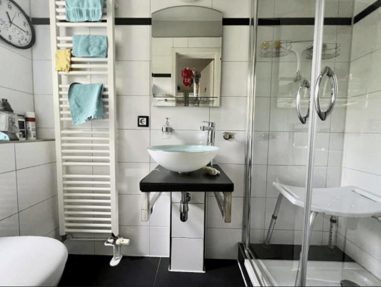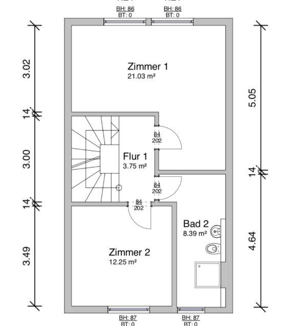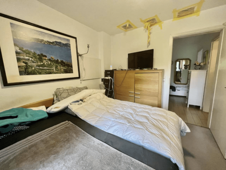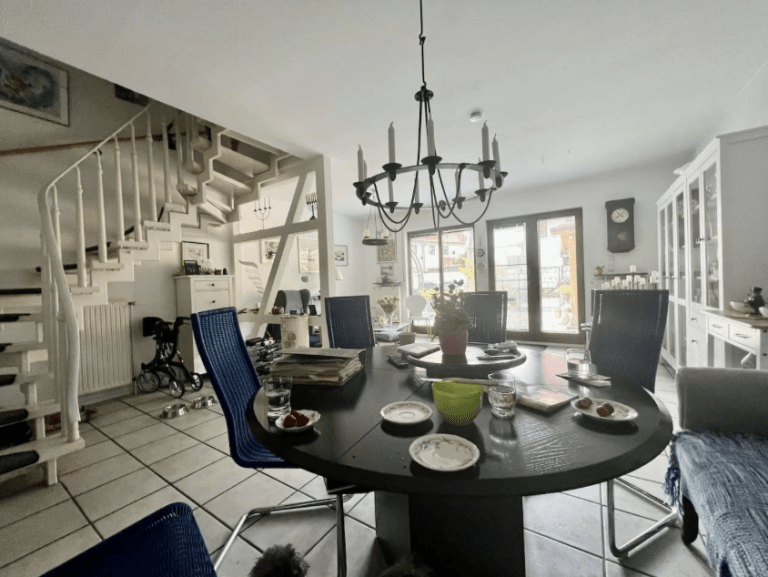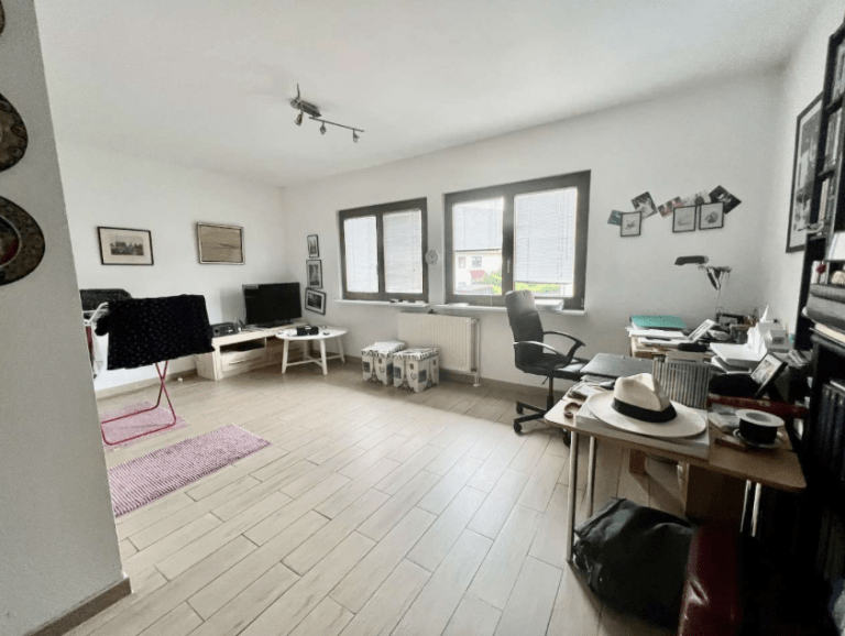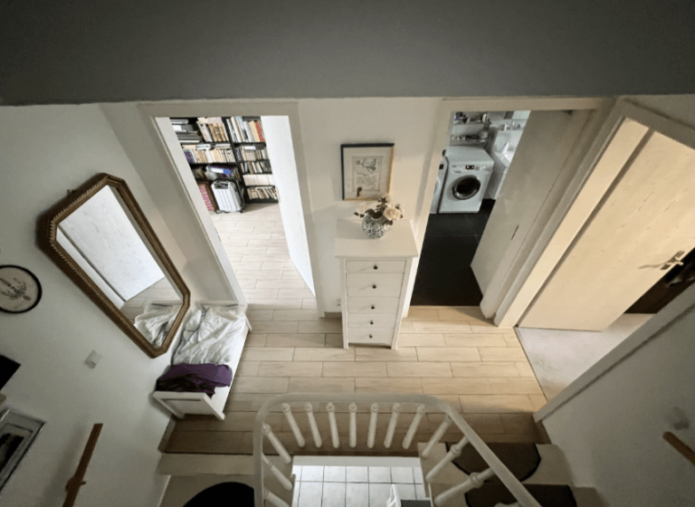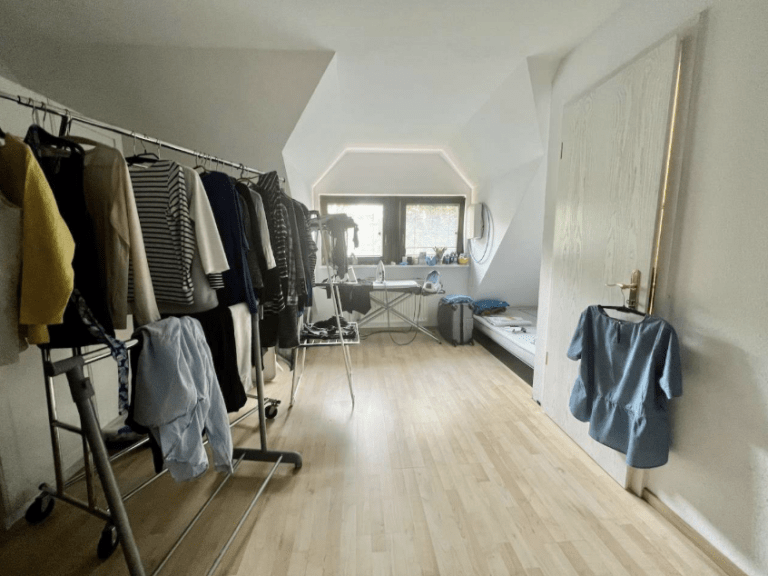 Über eine freitragende Holztreppe ist das Obergeschoss zu erreichen. Hier befinden sich zwei Zimmer sowie ein großzügiges Badezimmer, ausgestattet mit einer Dusche und genügend Platz für eine Waschmaschine sowie für einen Trockner. Im Dachgeschoss sind zwei weitere Zimmer und auch die Gastherme untergebracht. Letztere wurde vor vier Jahren erneuert.