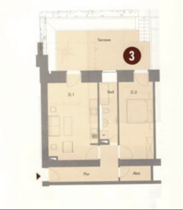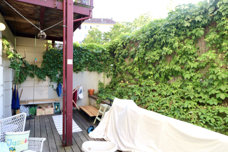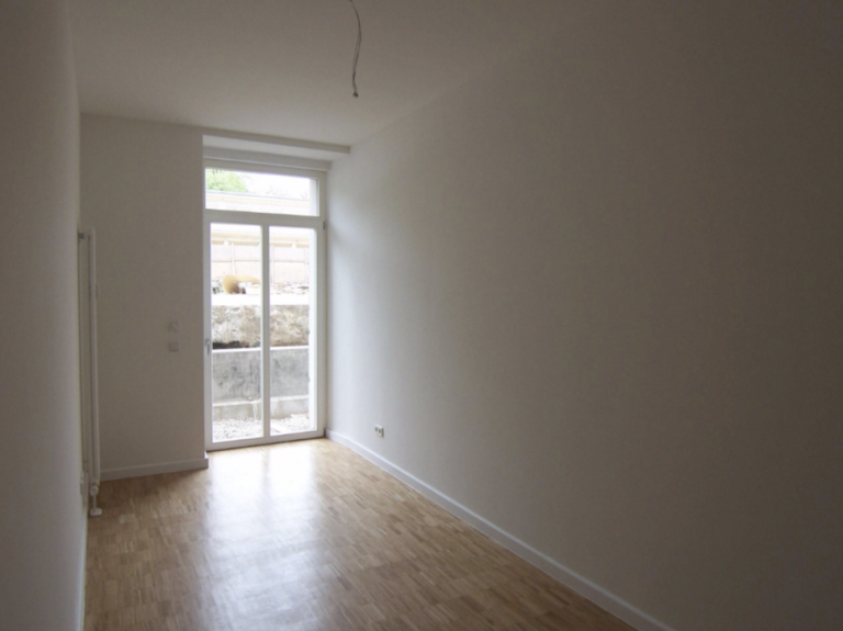 Die zum Innenhof ausgerichtete Wohnung ist in dem Erdgeschoss des repräsentativen Vorderhauses gelegen und verfügt über eine Wohnfläche von ca. 64,08 m². Diese verteilt sich auf zwei Zimmer nebst einer Küche und einem Tageslichtbadezimmer mit Badewanne. Der Wohnraum ist inklusive der Küche offen gestaltet. Von hier und von dem Schlafzimmer aus gelangt man zum absoluten Highlight dieser Wohnung, der westlich ausgerichteten Terrasse. Diese ist zum Innenhof gelegen und lädt zu erholsamen und genussvollen Sommerabenden ein.