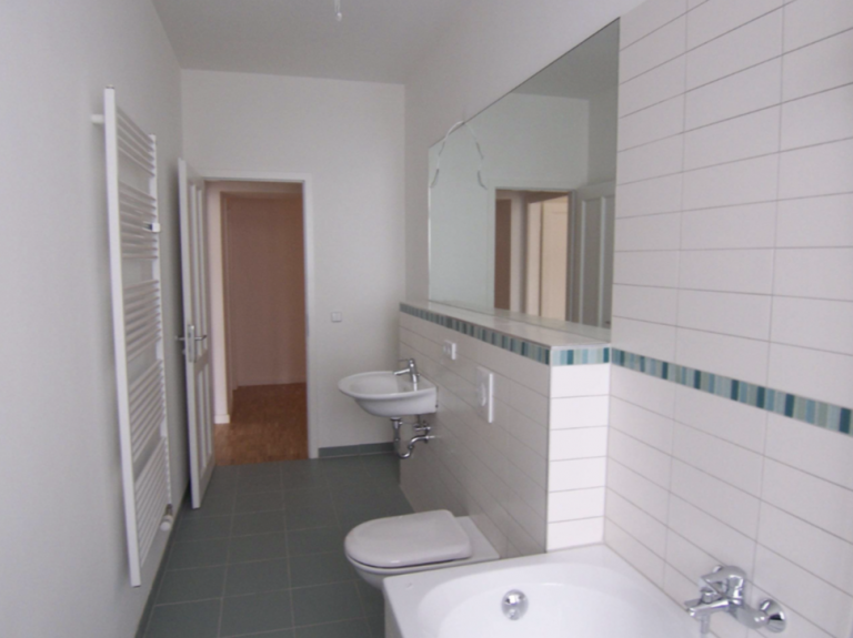 In den Wohnräumen und in dem Flur ist ein heller sowie hochwertiger Laminatboden verlegt. Das Badezimmer verfügt über einen geschmackvollen Fliesenboden. Die bodentiefen Fenster versorgen die vollständige Wohnung mit ausreichend Licht und tragen zu der freundlichen Atmosphäre bei.
